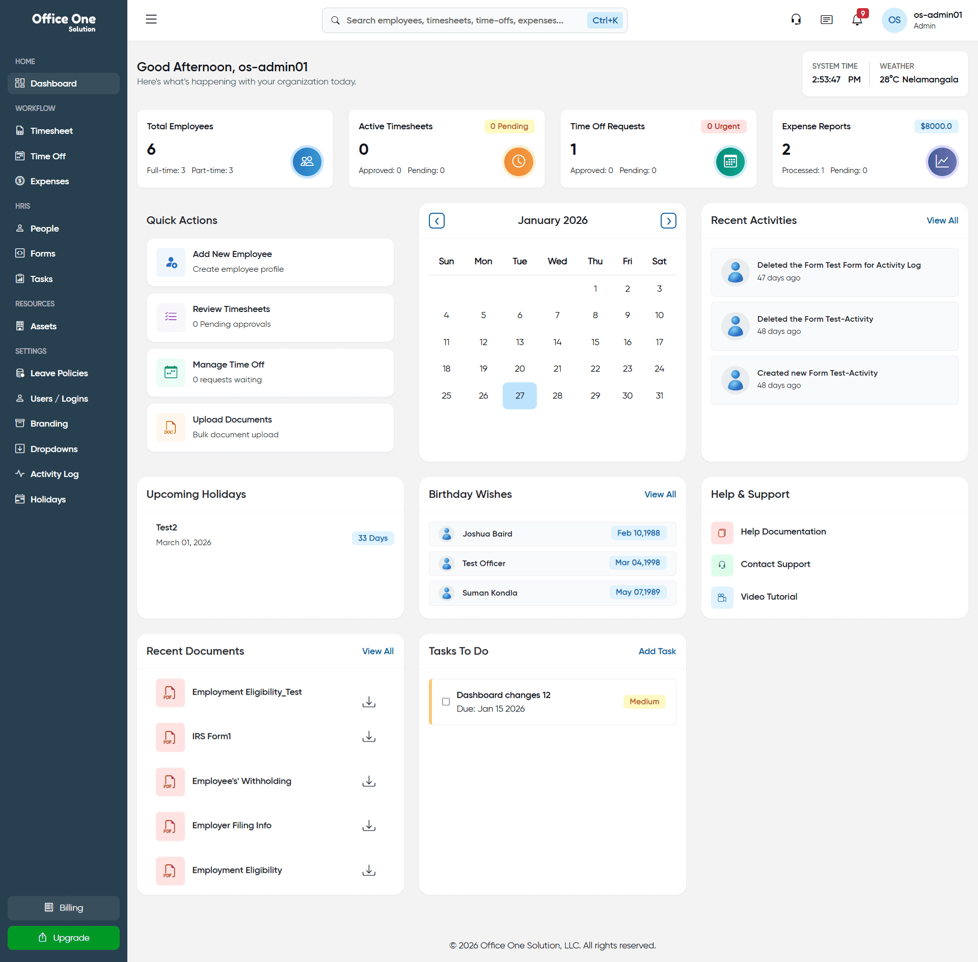 Built for scale and designed for human first business operations. Office One Solution brings structure, visibility, and governance to every workforce process.