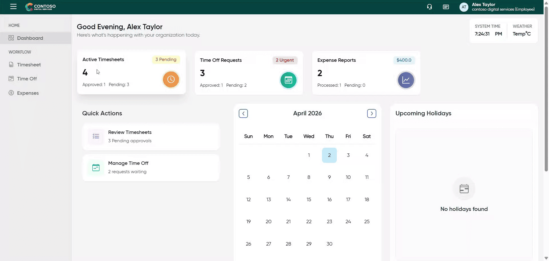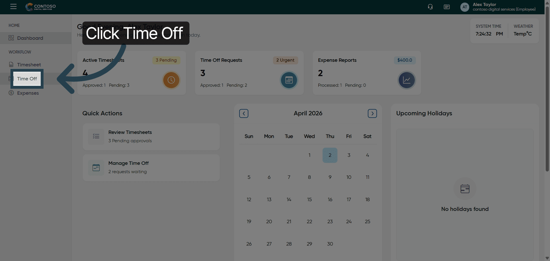 Click the Time Off section to view and manage your leave requests.