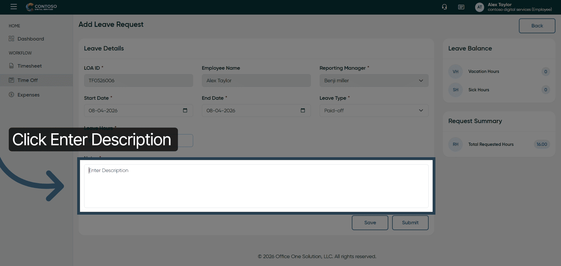 11. Add Leave Description