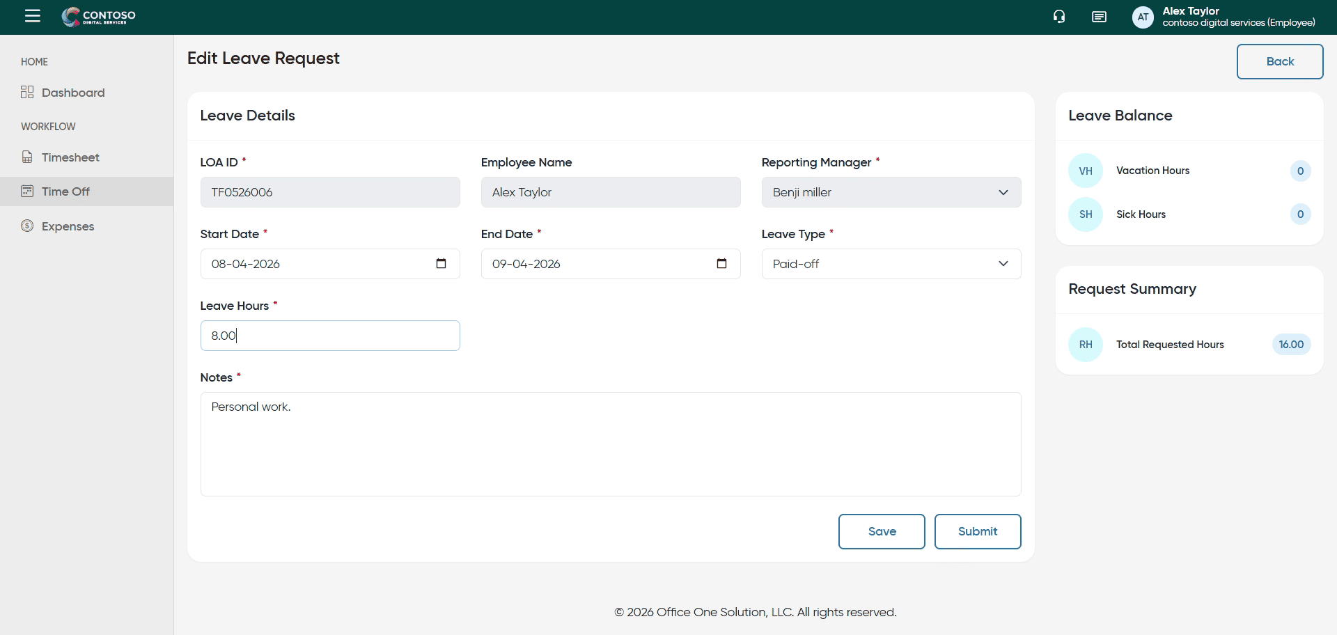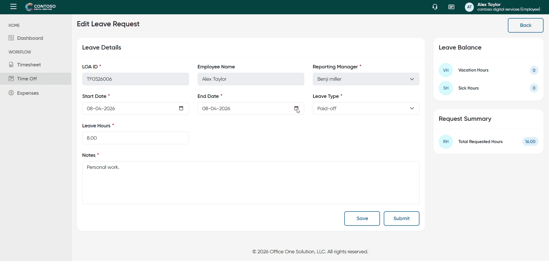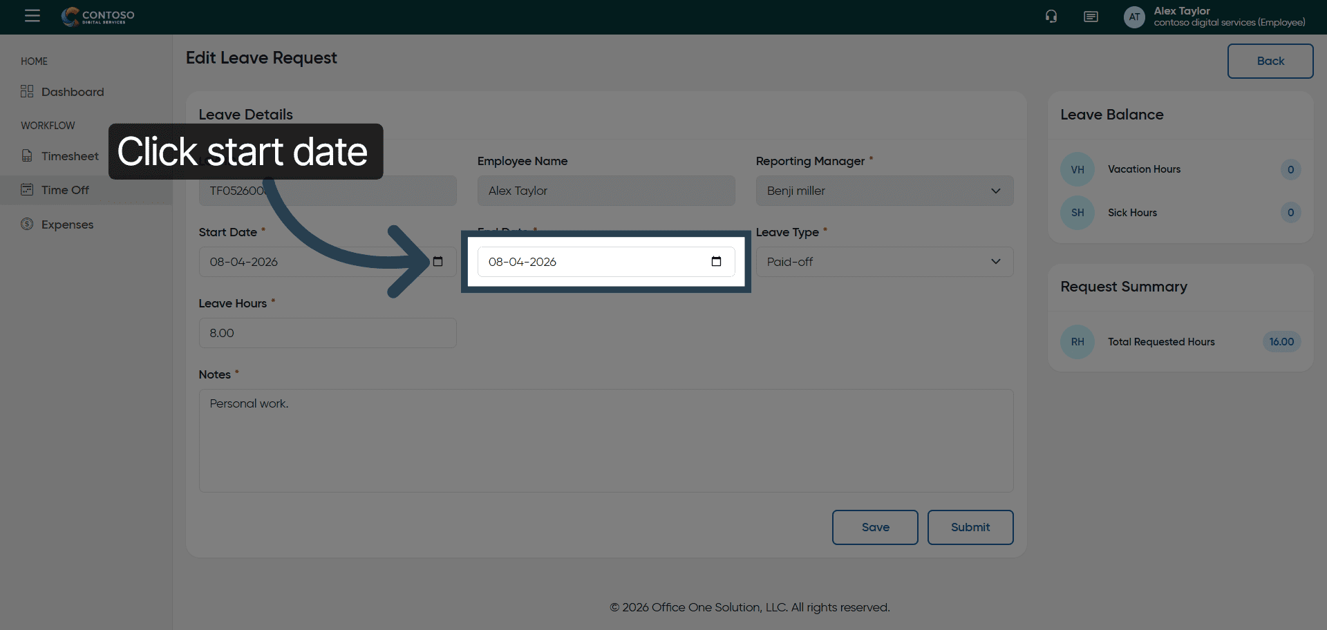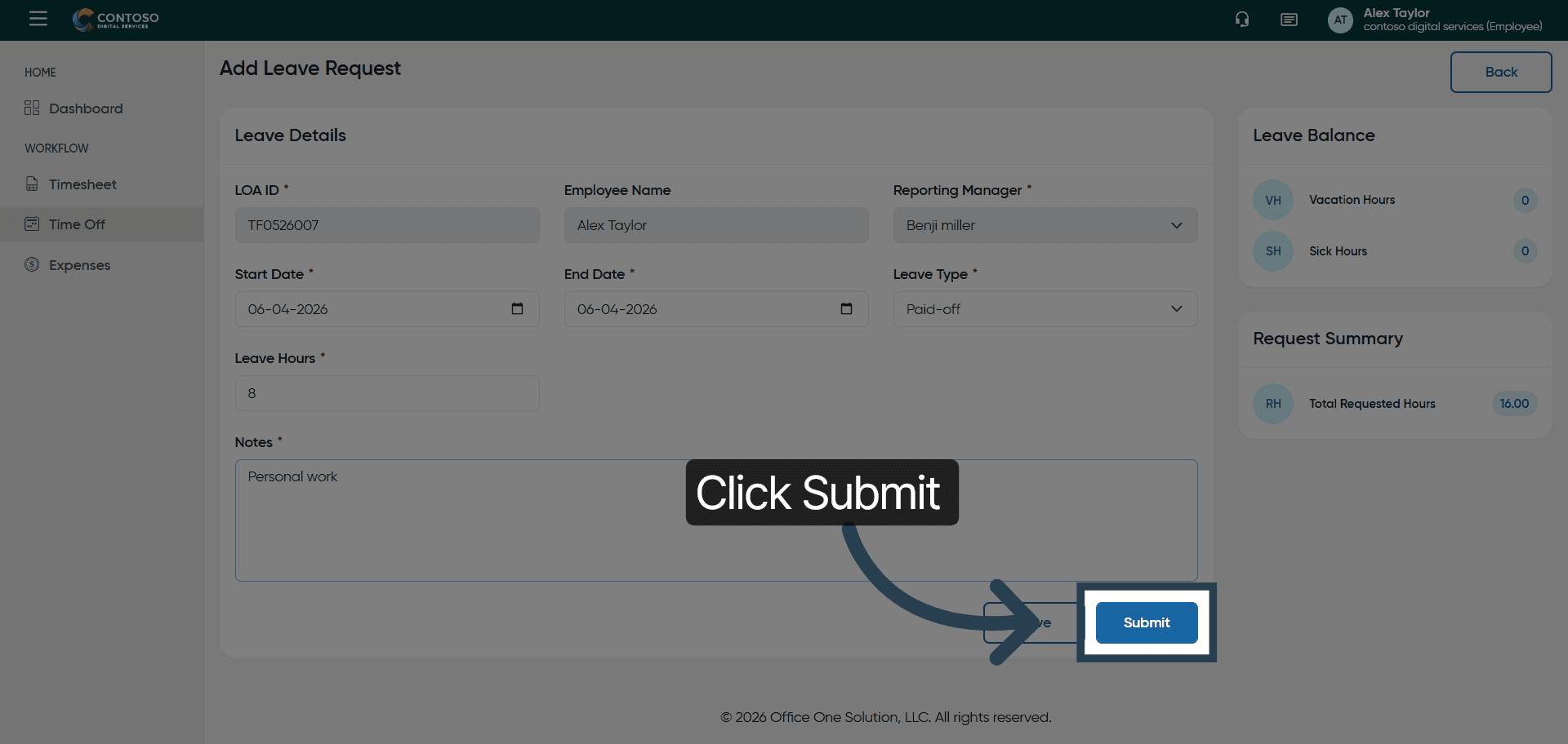27. Submit Leave Request