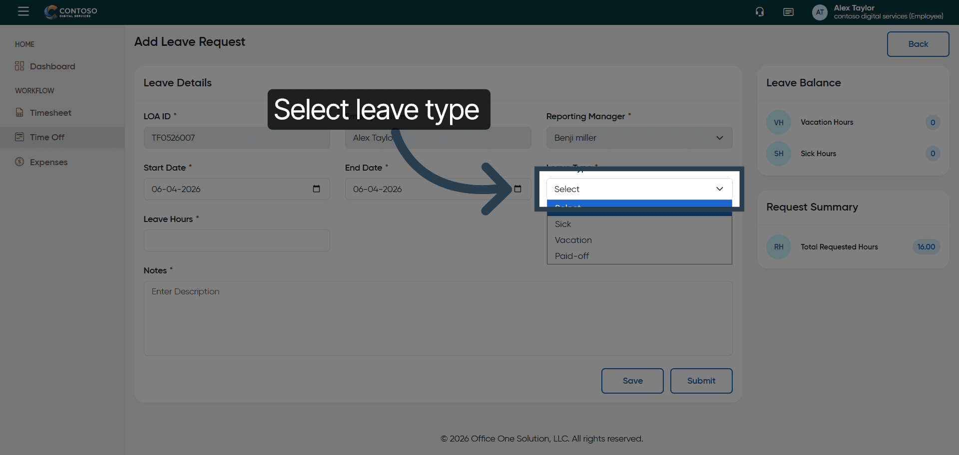 6. Open Leave Type Dropdown