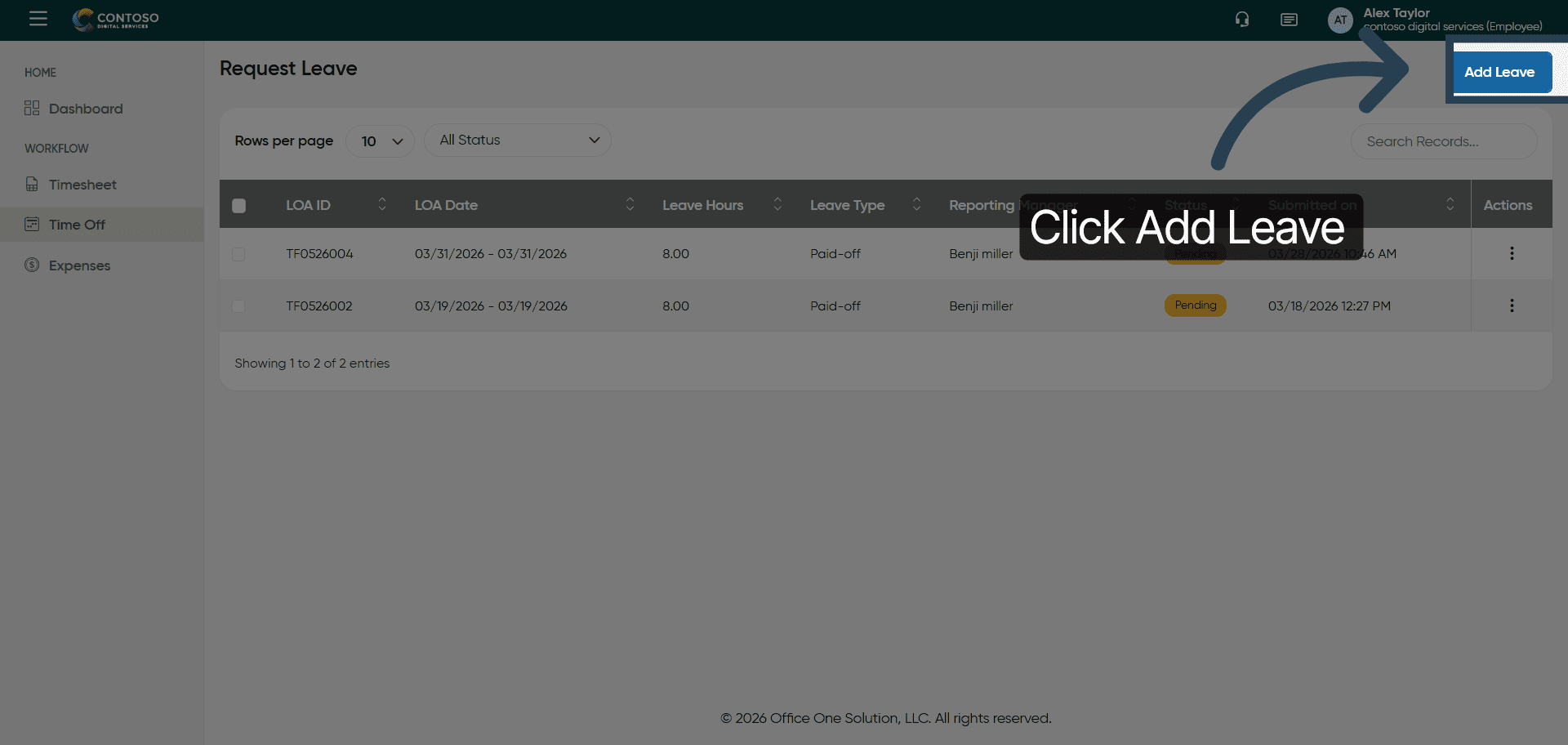 This tutorial guides you through managing leave requests using OfficeOne.