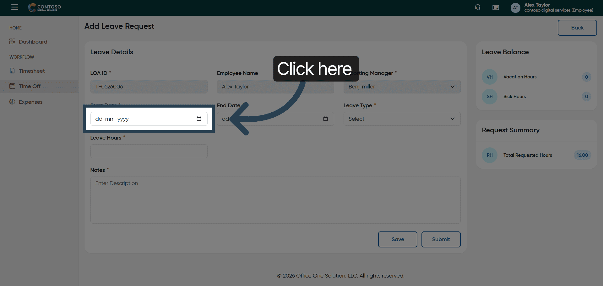 5. Enter Leave Start Date