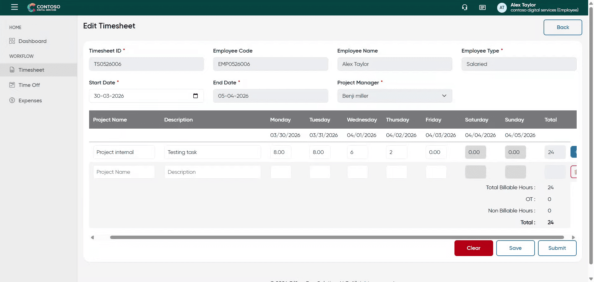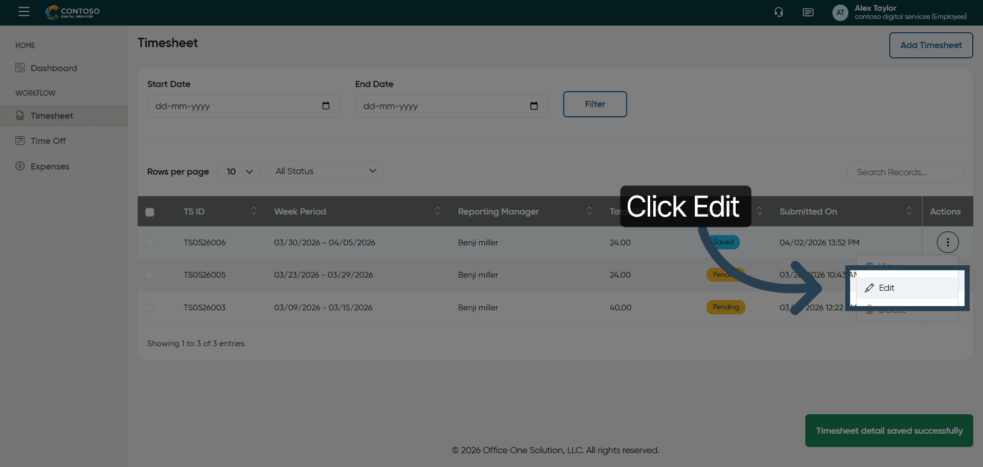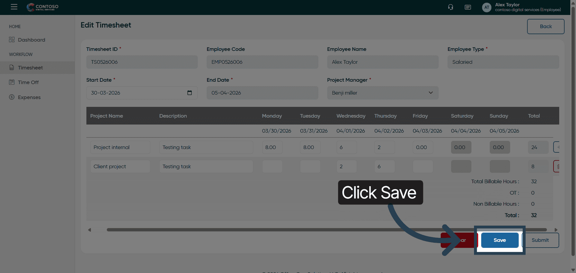 23. Save Edited Timesheet