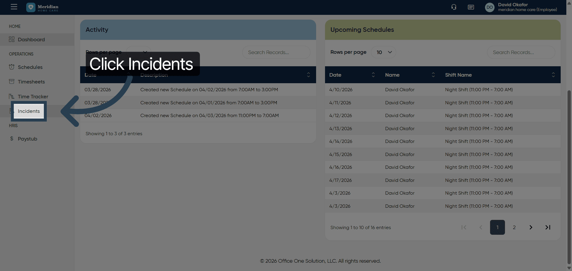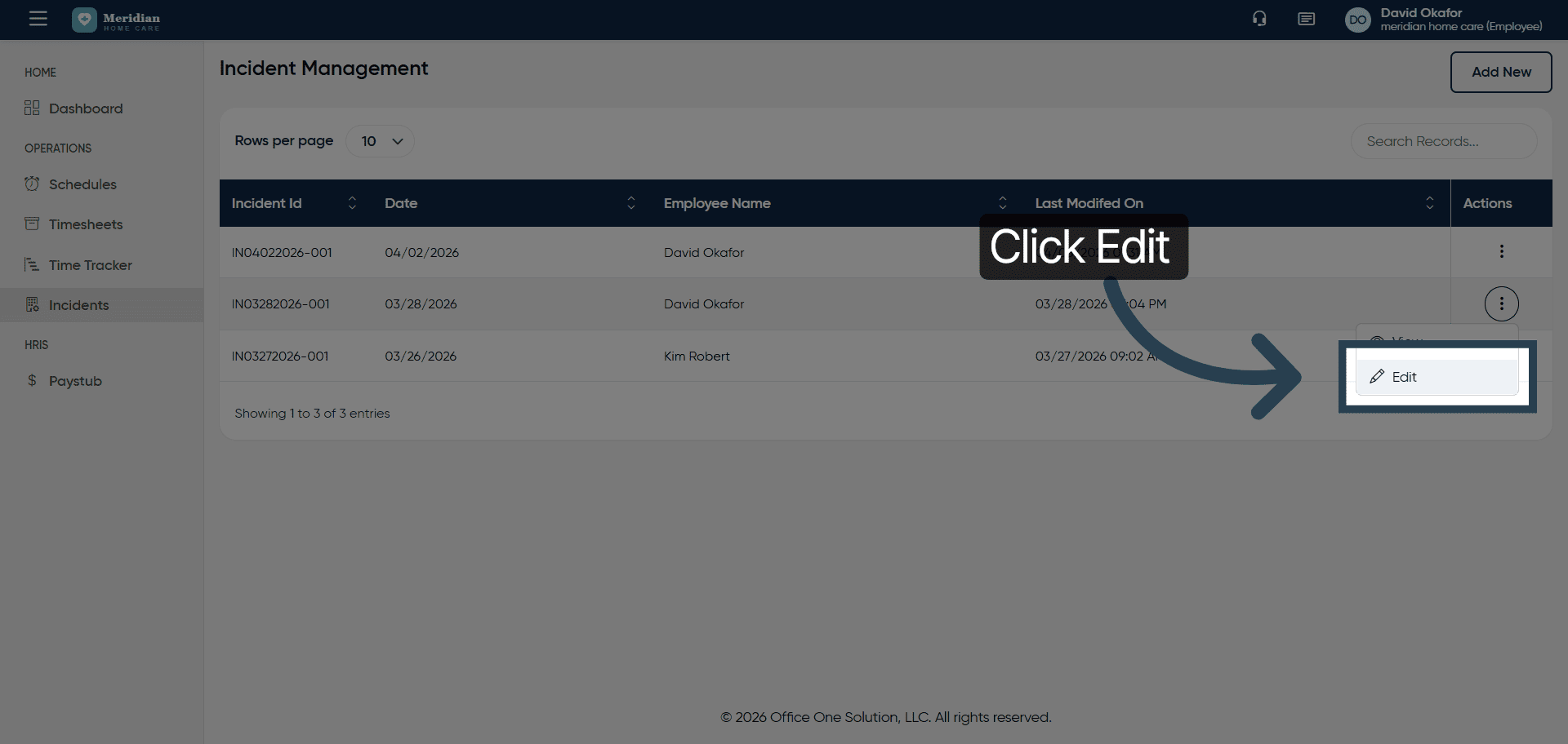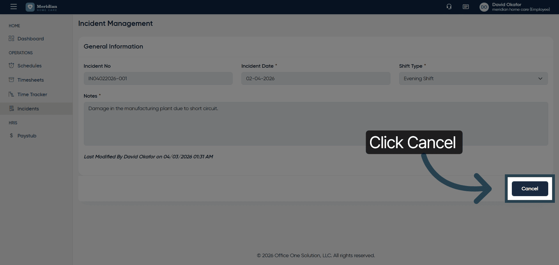 This tutorial guides you through managing incident records in OfficeOne