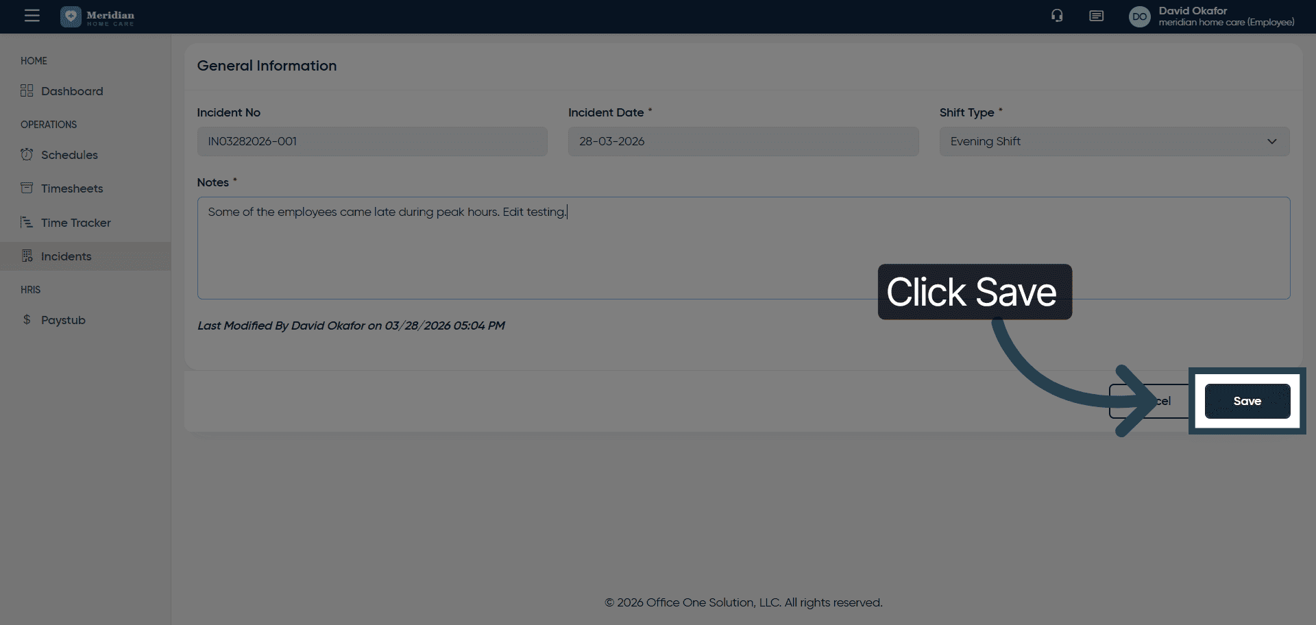Click “Save” to apply the changes to the incident record.