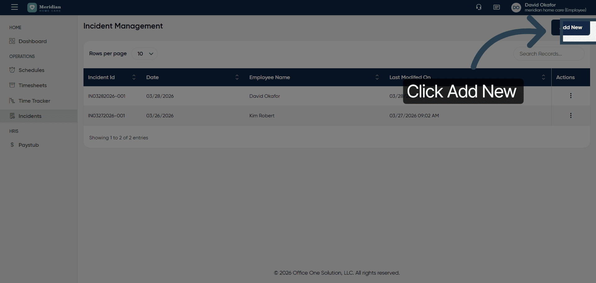 Click “Add New” to start creating a new incident record.