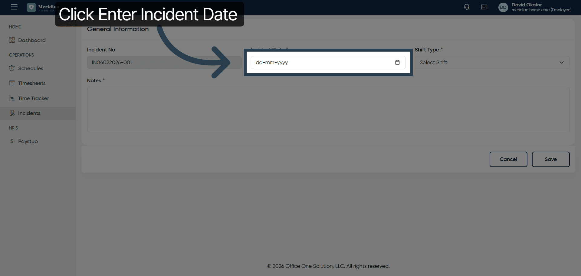 5. Enter Incident Date