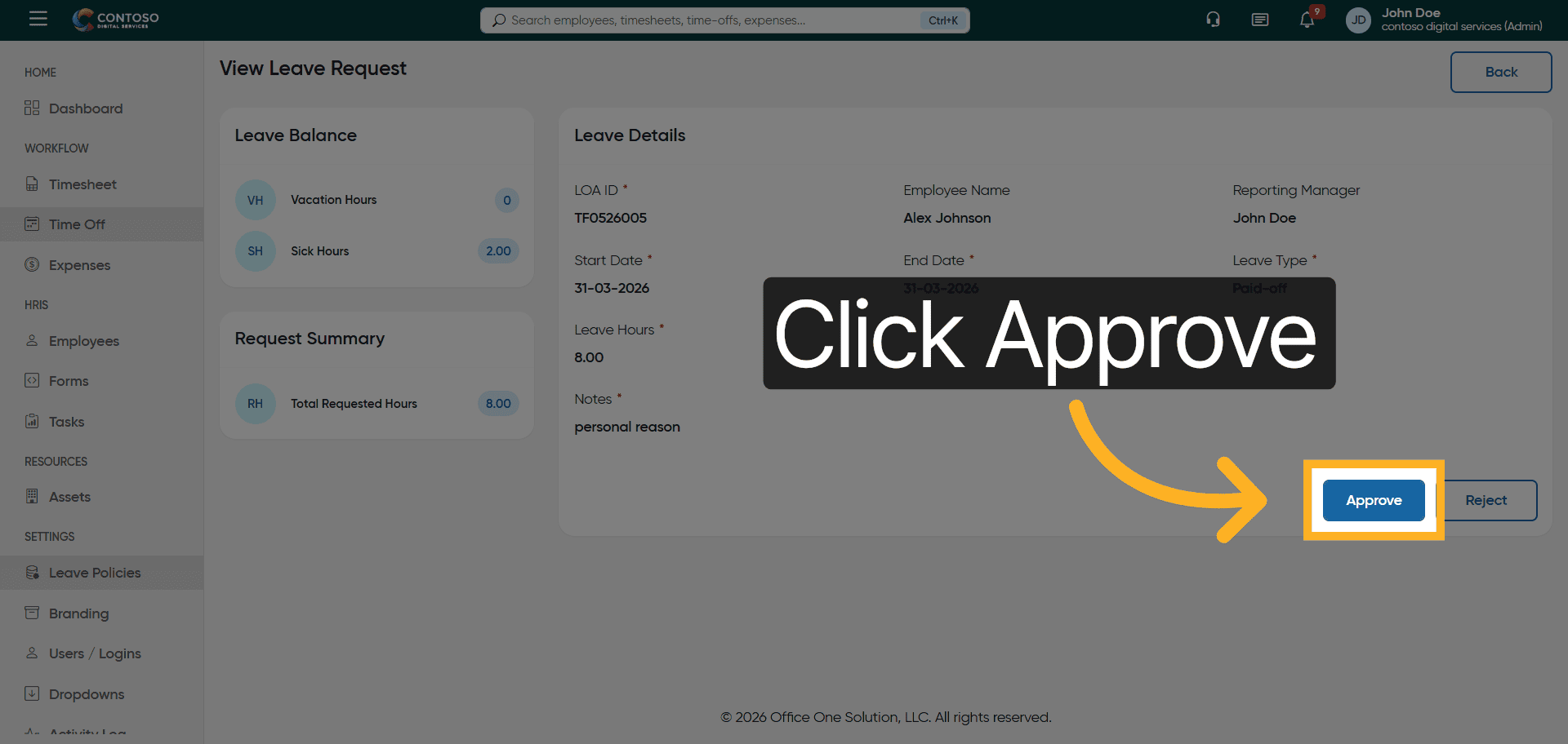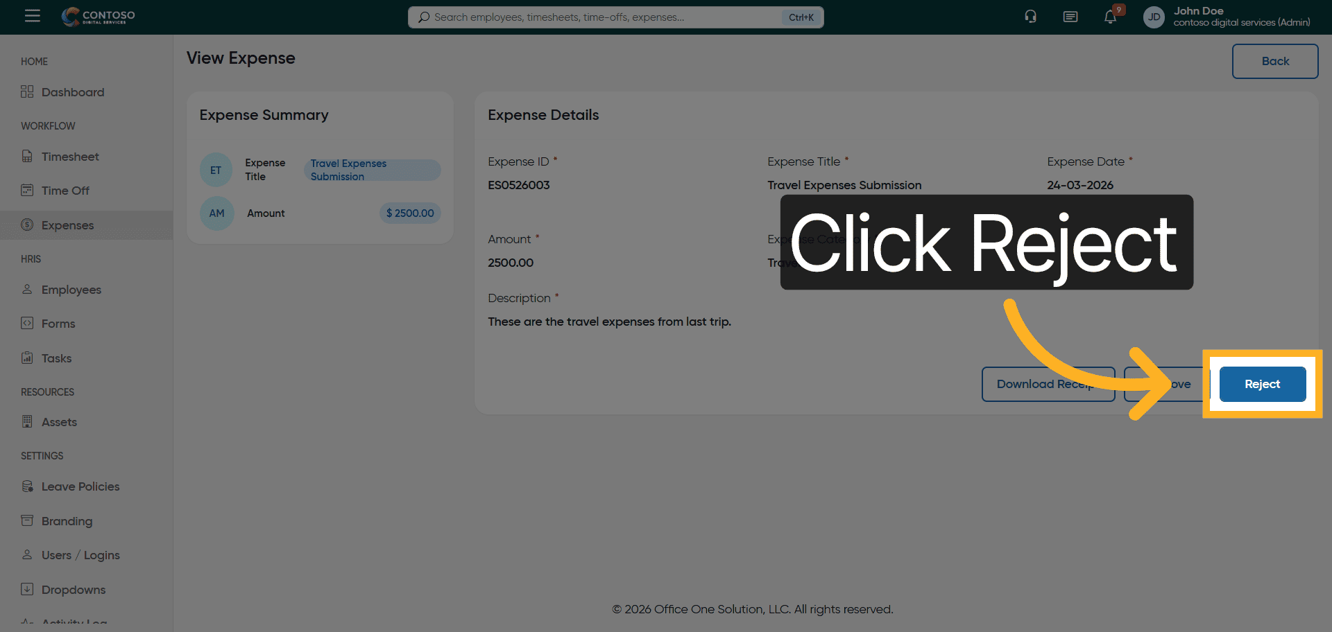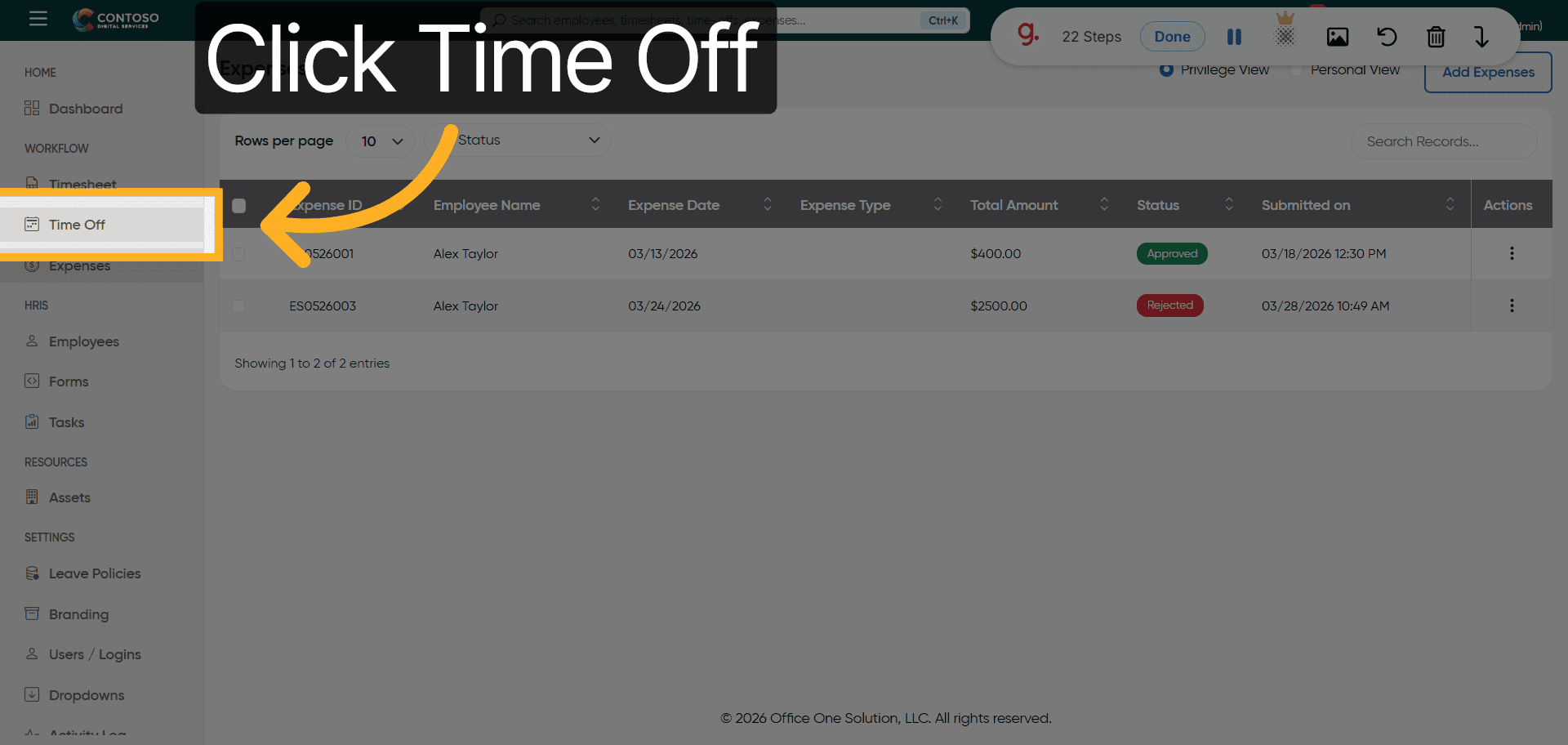 After completing this training, you will be able to efficiently manage timesheets, leave requests, and expense approvals within Office1solution. Practice these steps regularly to ensure accurate processing and compliance with company policies.