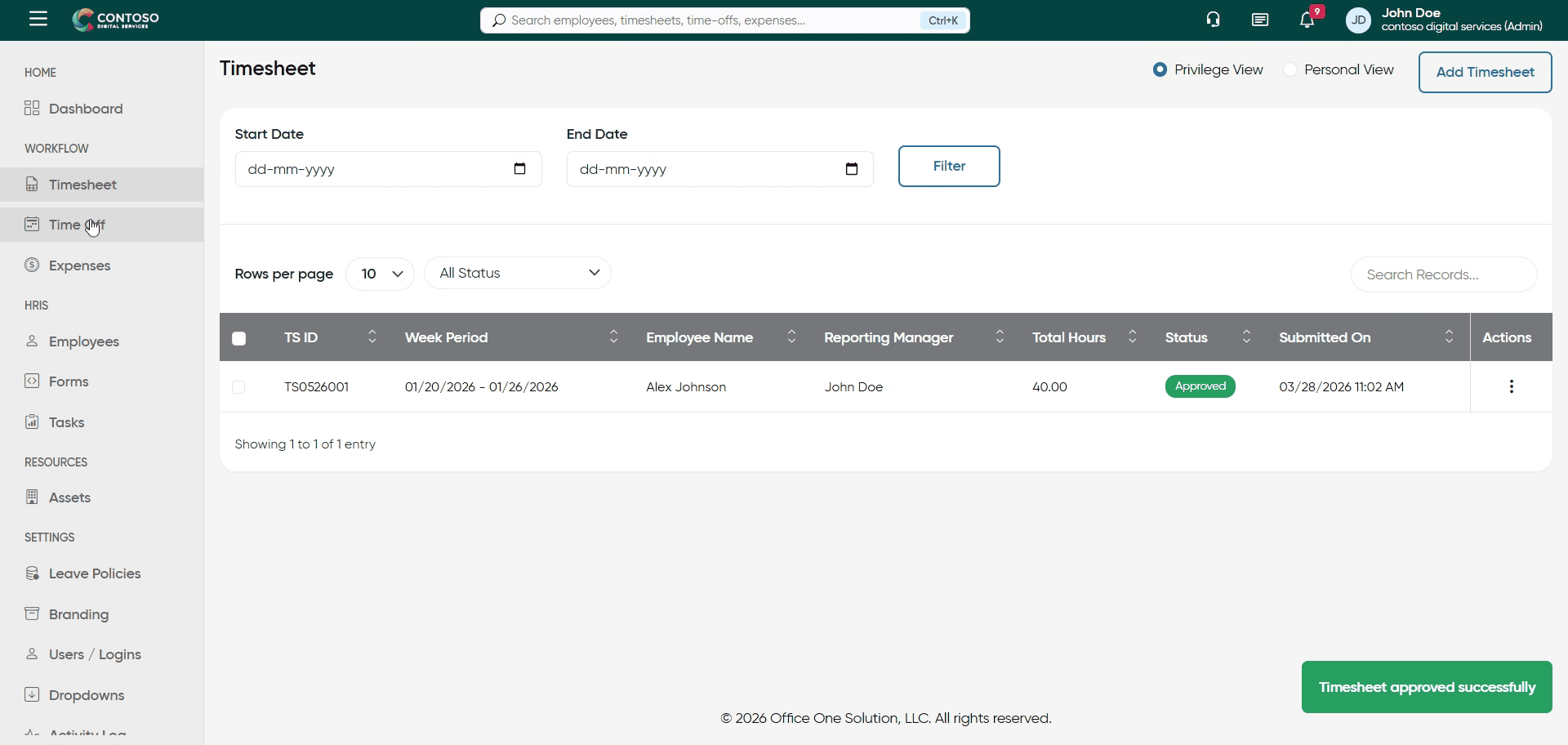 This training will equip you with the skills to efficiently manage timesheets, leave requests, and expense approvals within Office1solution.