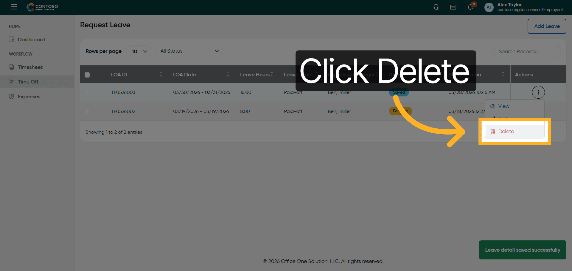 After completing this training, you will be able to efficiently manage employee leave requests by adding, editing, and deleting leave entries within Office1solution. Practice these steps to ensure accurate leave tracking and compliance with company policies.