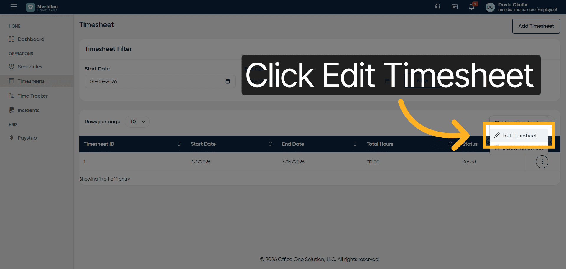 Click Edit Timesheet to modify the existing timesheet information.