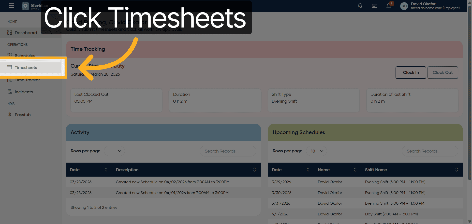 You will learn to add, edit, and submit timesheets as well as manually clock in for shifts.