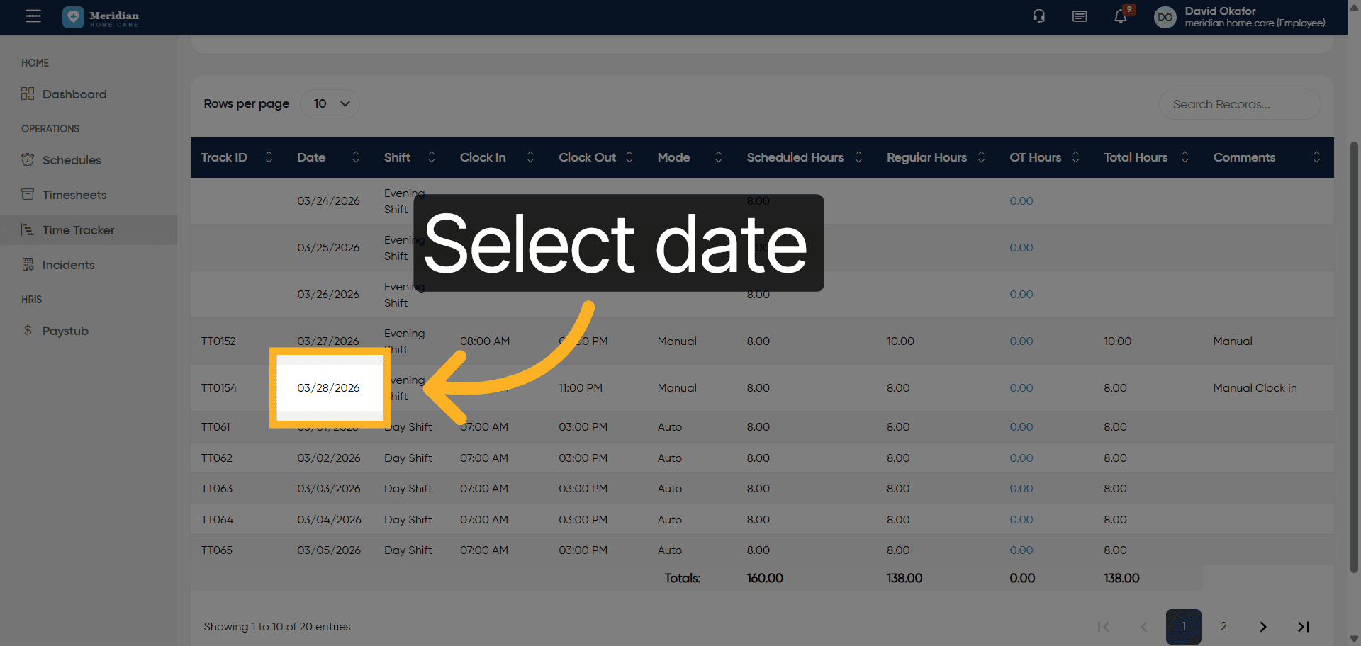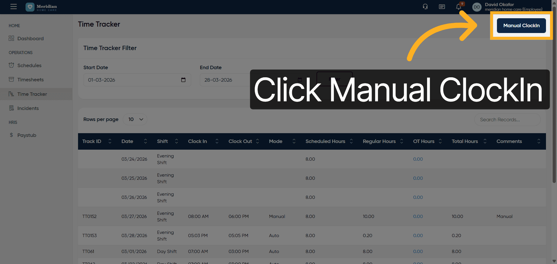 Click the Time Tracker section to manage your clock-in and clock-out times.