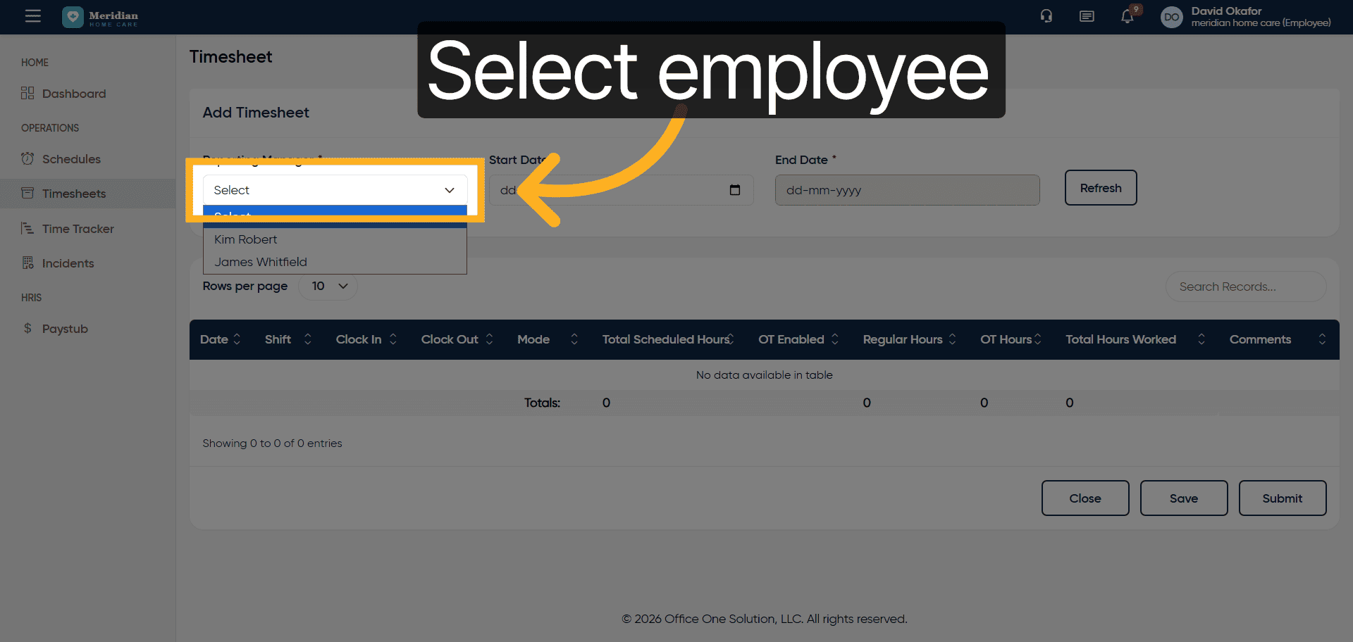 4. Choose Employee for Timesheet